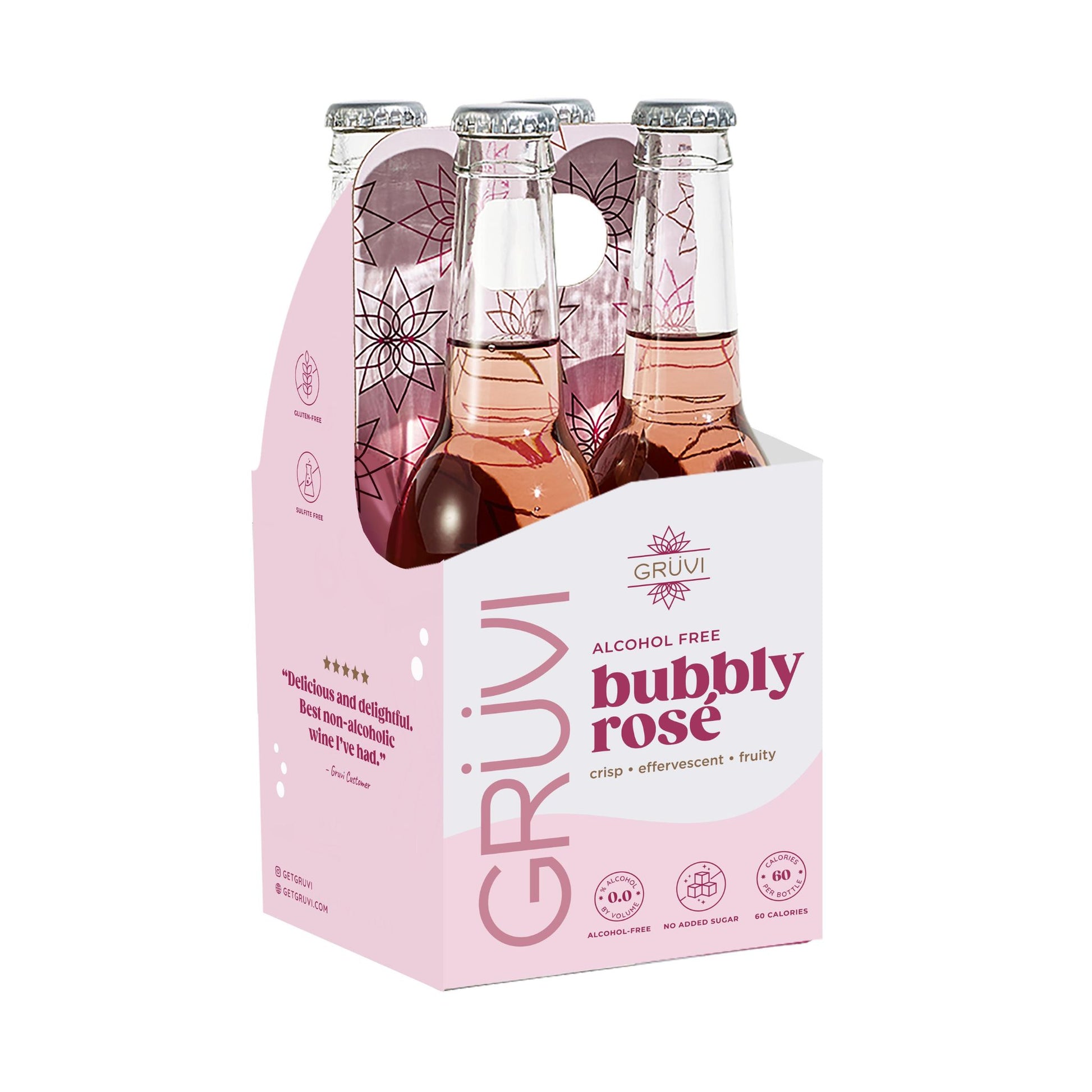 Grüvi's non-alcoholic sparkling rosé is crisp, effervescent, and fruity on the nose, with notes of tart green apple and fresh strawberry.
